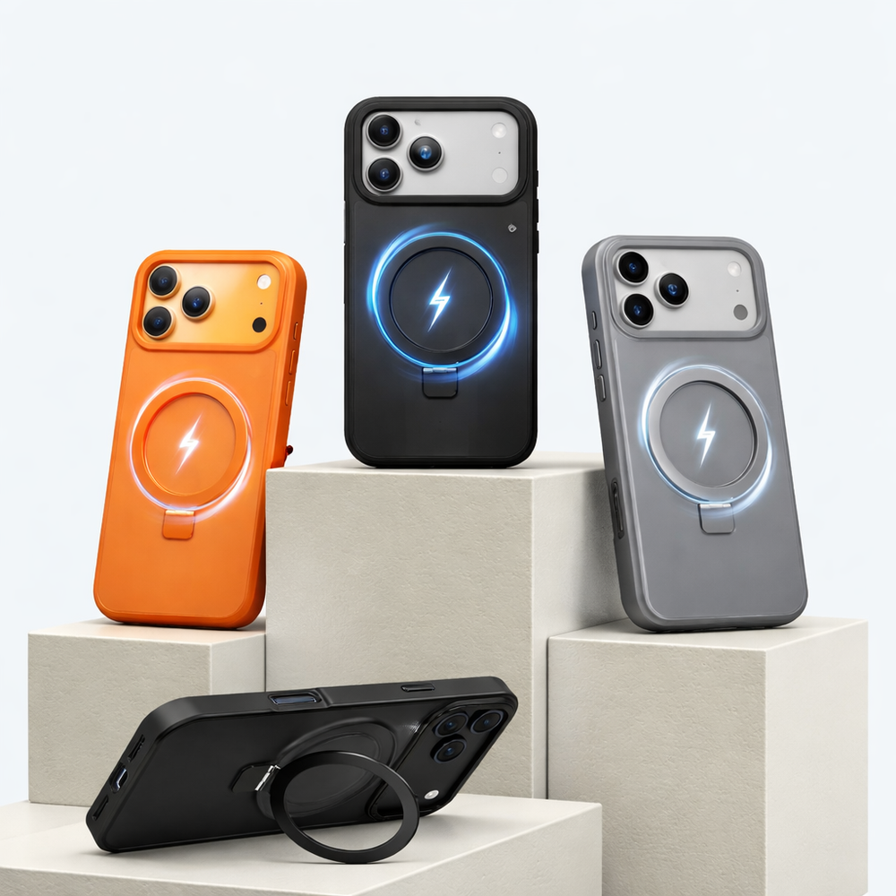 This case comes with a free camera lens and has a built-in stand.